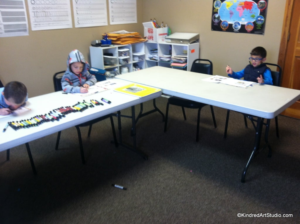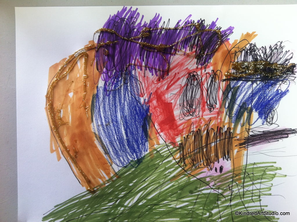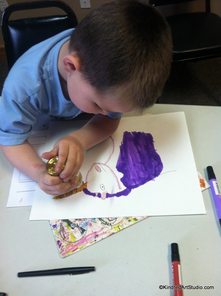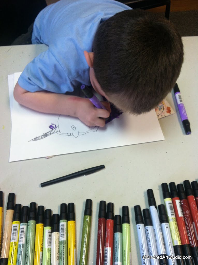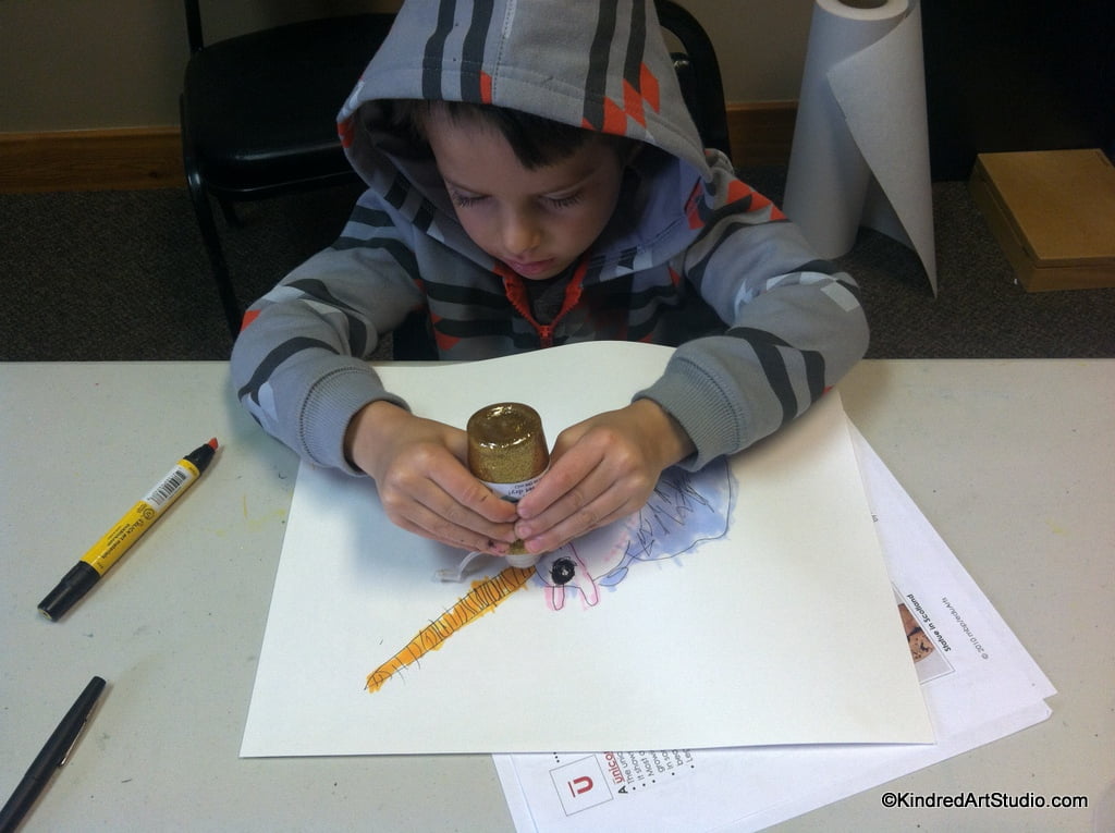 When they were finished drawing and coloring their unicorn, they added Glitter Glue for the mane and the horn. This was good for sensory skills and I think they liked it.